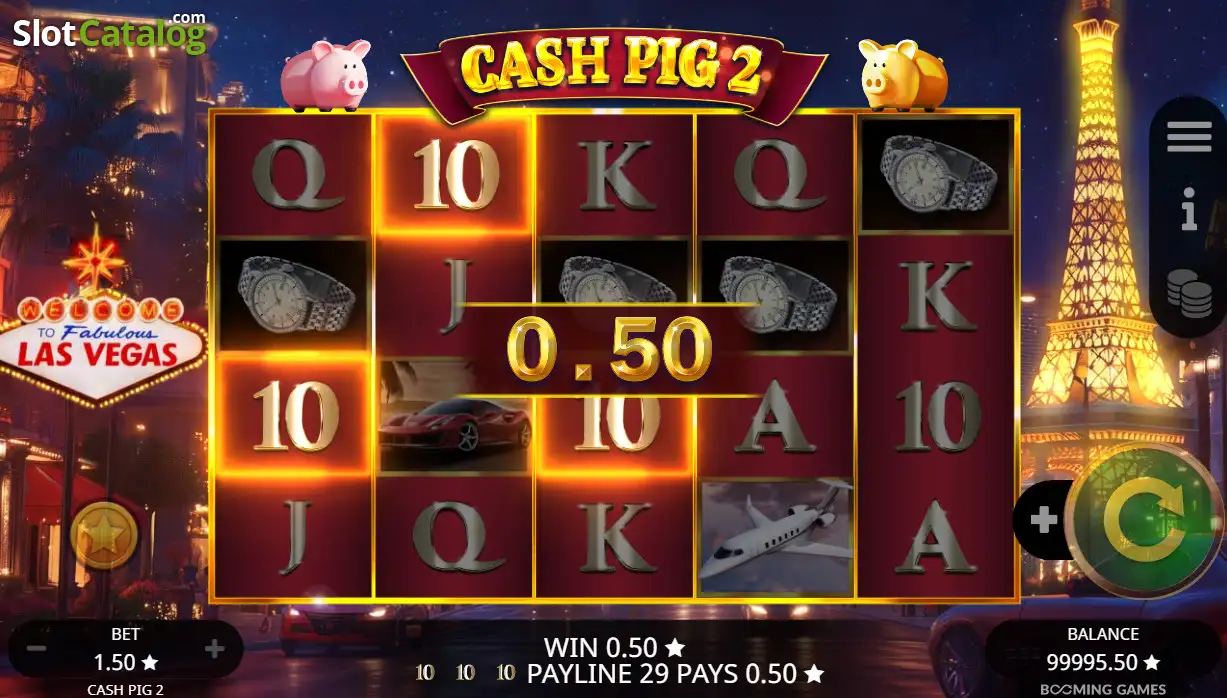 《Cash Pig 2》采用了农场和财富主题的设计,背景设定在一个充满金钱与奇妙道具的农场中。主角是一只富有的猪,带领玩家走向财富的巅峰。游戏的图像设计充满卡通风格,色彩鲜艳、细节丰富,让人眼前一亮。每个符号和动画都精心设计,既能展现幽默感,又能在视觉上给玩家带来愉悦的体验。